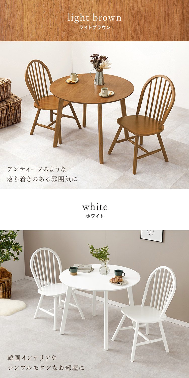 人気のウィンザーチェアと円形テーブルでカフェのような雰囲気になるダイニング3点セット