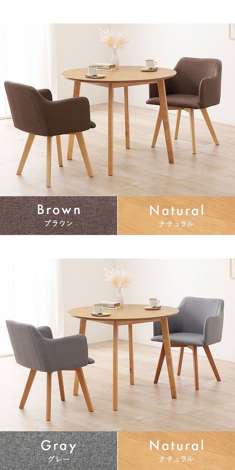 円形テーブルに肘付きチェアを組み合わせたダイニングセット。圧迫感の無い構成で、ダイニング以外のシーンにも活用できます。