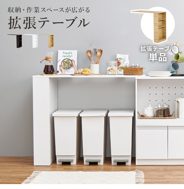 カウンター専用オプションテーブル 後付け 拡張テーブル単品 高さ84cm キッチンカウンター ごみ箱上ラック ダークブラウン