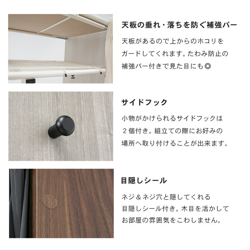 側板は木目調で、お部屋に馴染みやすく雰囲気をこわしません。