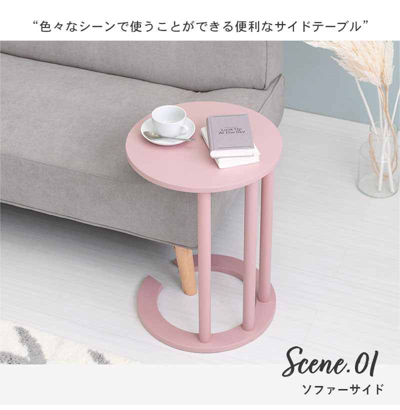 機能的なデザインのサイドテーブル。くすみのあるアースカラーの色合いが魅力的。