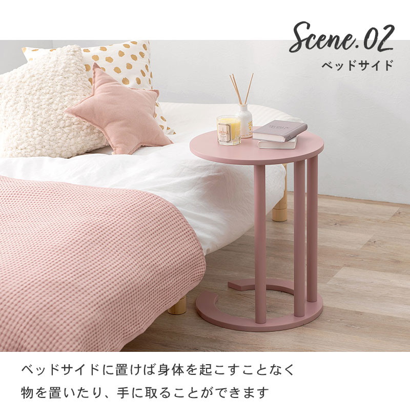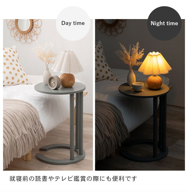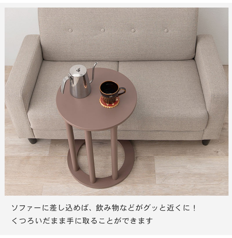 ソファの脚を通せるように設計されているので、ソファサイドに置くとき無駄なスペースを開けることなくぴったりとフィットする位置に収まります。