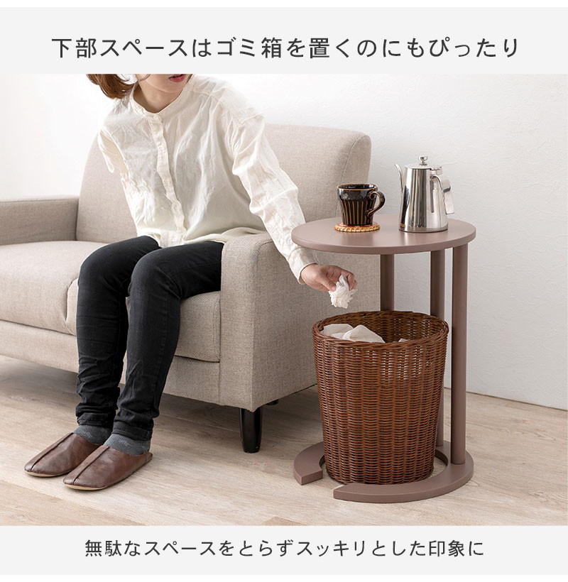 サイドテーブル アースカラー 4色 くすみカラー ゴミ箱上 ミニテーブル コーヒーテーブル 収納 玄関 軽量 簡単組立 ブルーグレー