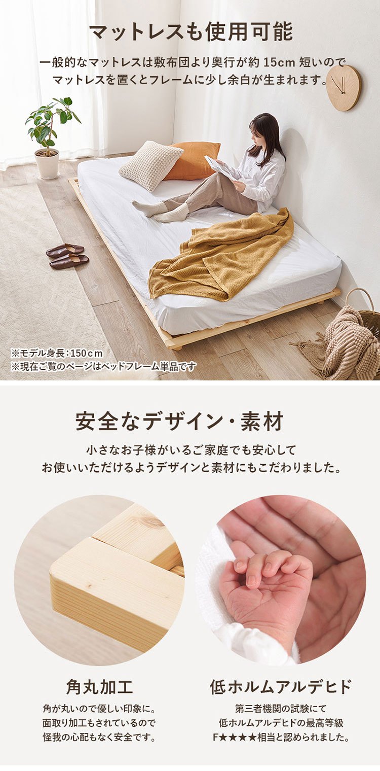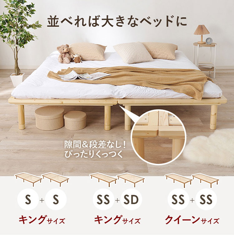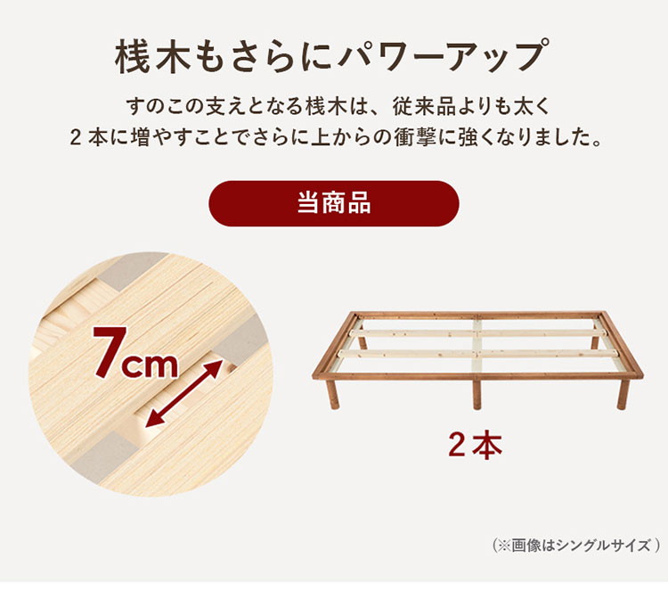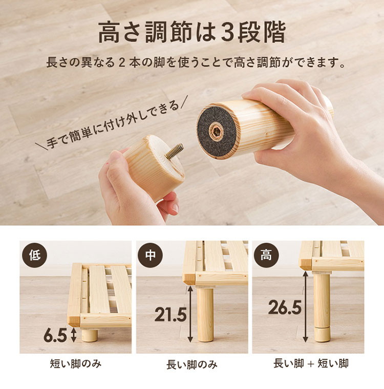 耐荷重350kg 頑丈すのこベッド セミダブル 敷布団・マットレス対応 高さ調整 3段階 ベッドフレーム 天然木 木製 ライトブラウン