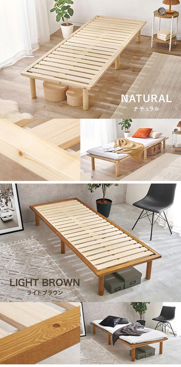 耐荷重350kg 頑丈すのこベッド セミシングル 敷布団・マットレス対応 高さ調整 3段階 ベッドフレーム 天然木 ライトブラウン