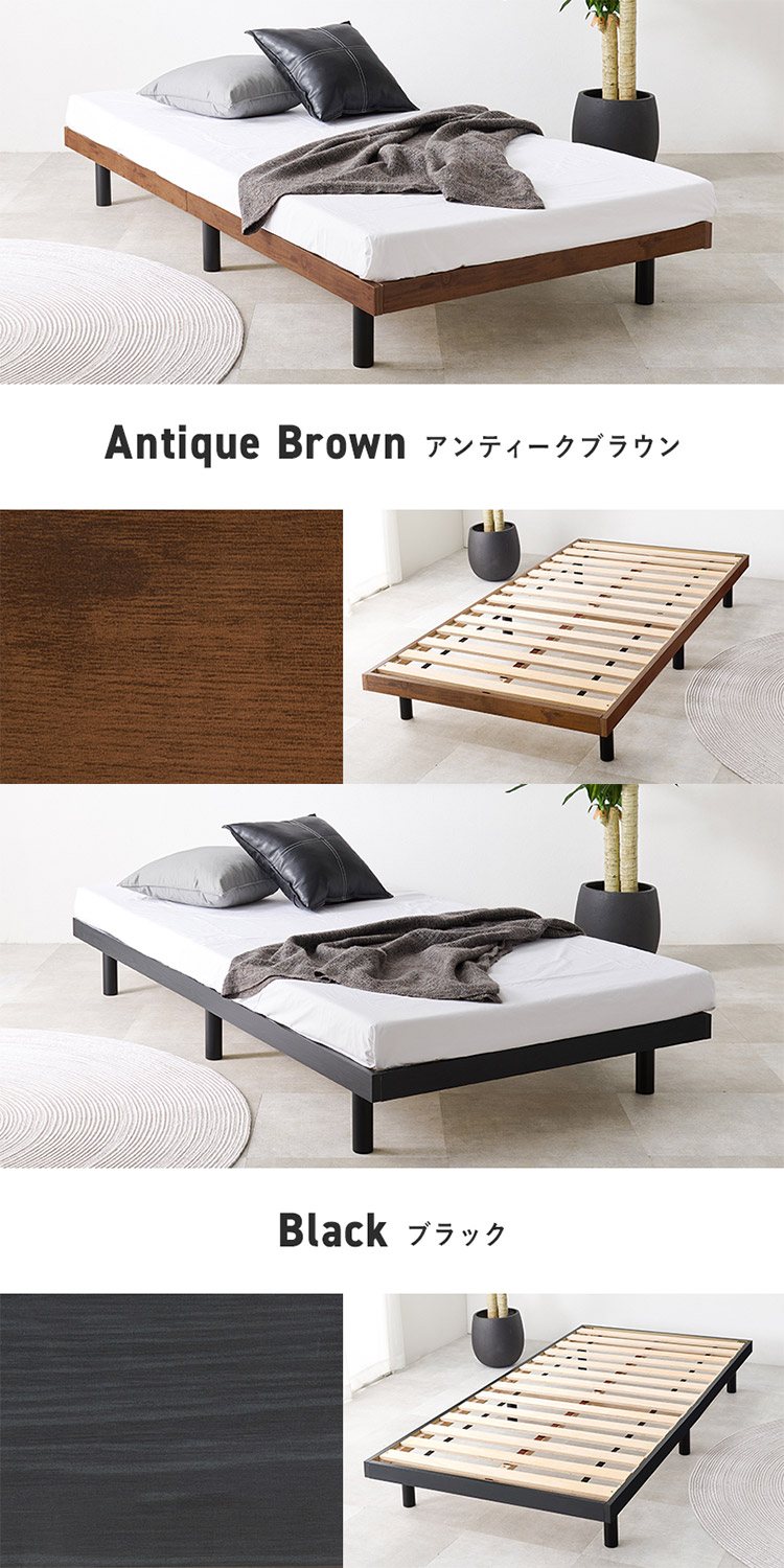 耐荷重350kg 頑丈すのこベッド シングル ロータイプ フロアベッド ベッドフレーム フレームのみ ローベッド 北欧 アンティークブラウン