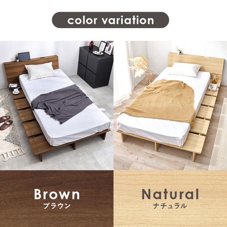 お掃除ロボット対応 ステージベッド シングル ボンネルコイルマットレス付き ヘッドボード付き 頑丈 耐荷重350kg ブラウン