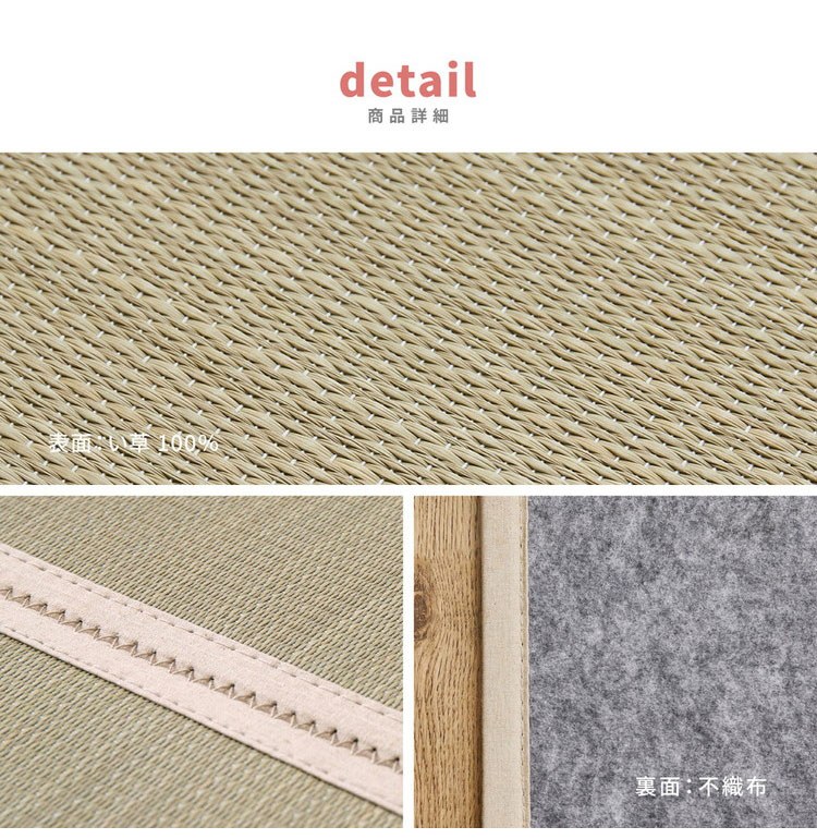 急な来客など必要な時にサッと取り出せ、パッと広げるだけ。折りたたんでコンパクトに収納できるので、出し入れも簡単!マットレスとしてフローリングと敷布団の間に敷けば、程よいクッション性で床の硬さを軽減。い草の快適機能で、床と布団のジメジメや底冷えのひやっと感からも守ってくれます。また、置き畳のようにもお使いいただけるため、複数枚を並べて敷けば、広々とした畳スペースに。