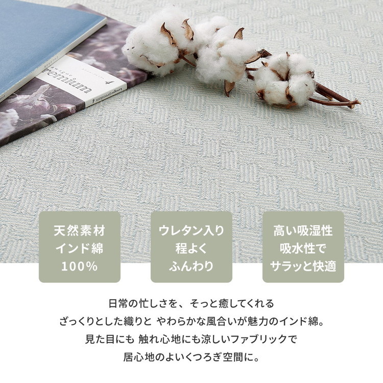 ざっくり感のあるコットンの心地よい手触りとやわらかな風合いが魅力のインド綿100%ラグ。