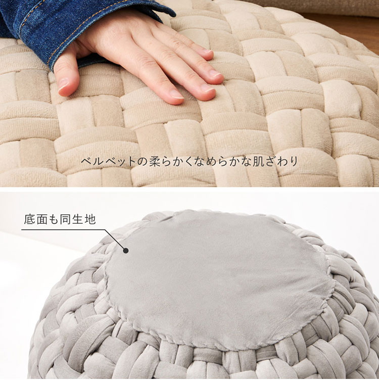 ベルベット調 プフ クッションスツール Lサイズ 直径50cm 可愛い かわいい オットマン サイドテーブル ベージュ ベージュ
