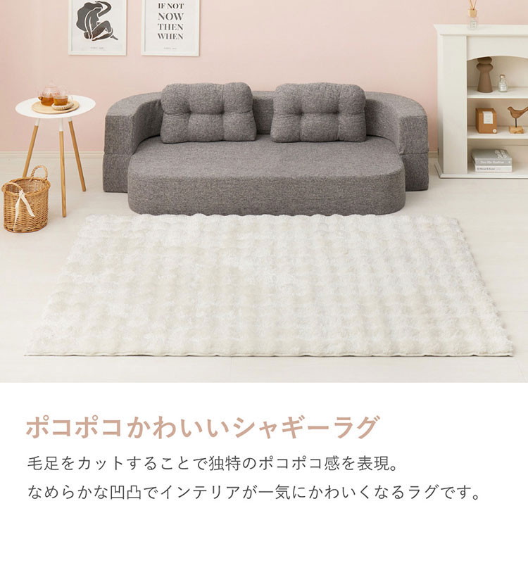 もこもこ ラグ きらめくポコポコシャギーラグ メルア 120×180cm ラグ マット カーペット 絨毯 北欧 シンプル ベージュ