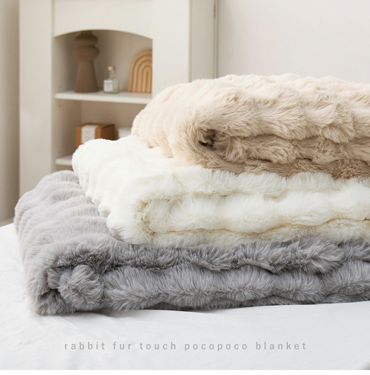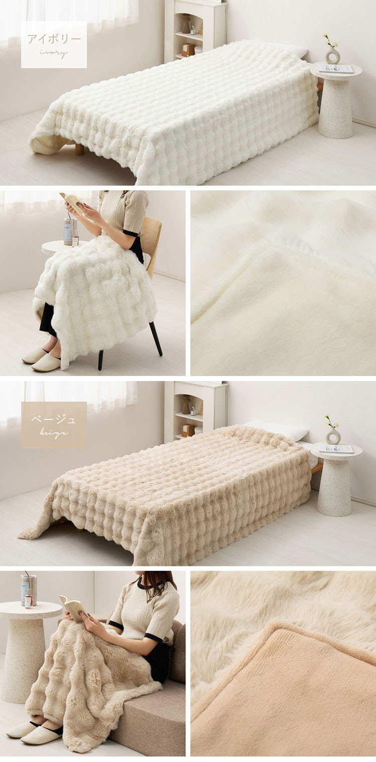 もこもこ 毛布 ブランケット ポコポコ毛布 ルナ 70×100cm ふわふわタッチ ラビットファー 布団 掛け布団 ベージュ