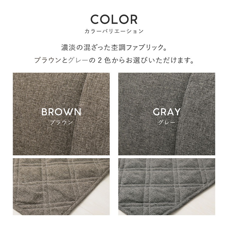 アンダーラグ:表面:ポリエステル100% 中材:ウレタンフォーム4cm(25D) 裏面:ポリエステル100%(すべり止めドット付き)