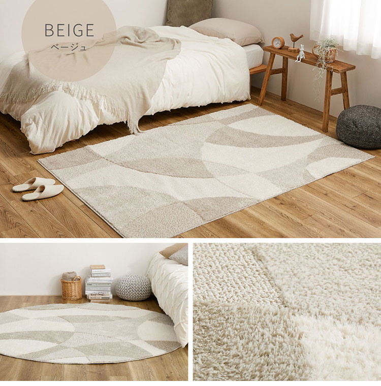 国産高機能ラグ ジャスト 180cm 円形 日本製 ラグ ラグマット カーペット 絨毯 防ダニ 抗菌 防臭 ホットカーペット 床暖房対応 ベージュ