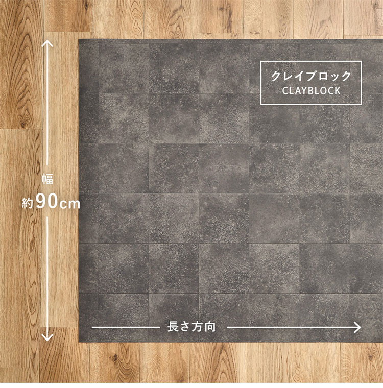 【ペットもOK】日本製 クッションフロア 90×150cm 滑りにくい 消臭 抗菌 キズが目立たない お掃除簡単 クレイブロック[700040465]