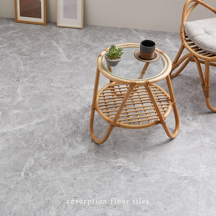 【20枚入】 貼ってはがせるストーン調フロアタイル 30.5×30.5cm 【約1畳】 大理石調 モノトーン DIY フロアマット 床材 吸着タイプ アッシュグレー[81965710]