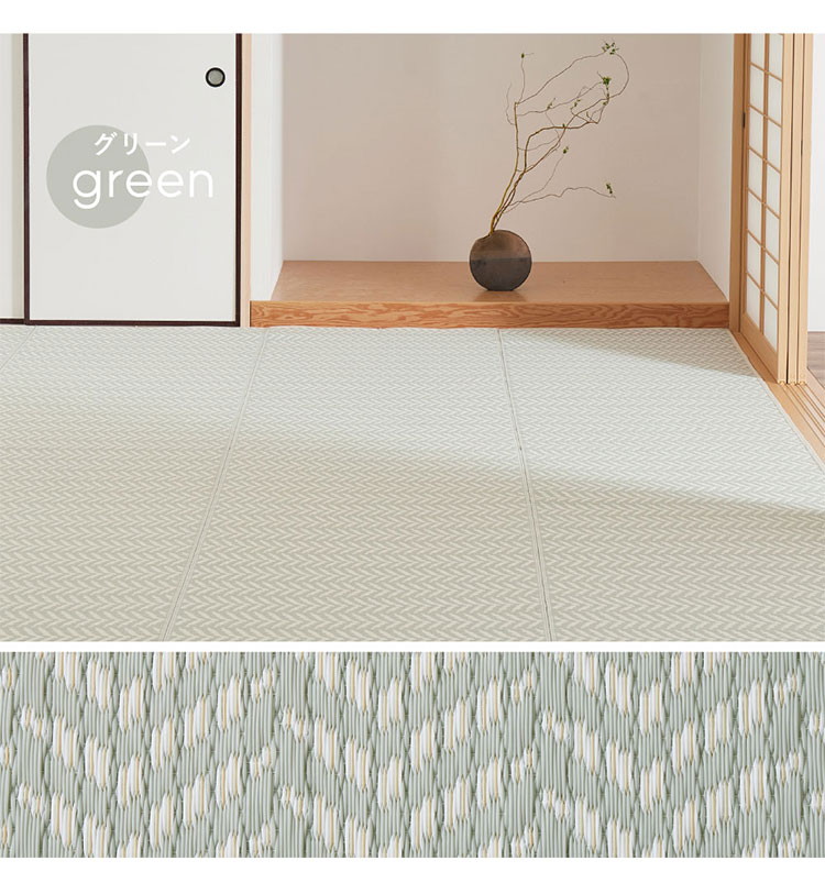 裏付き 洗えるい草風カーペット 261×261cm パスラッシュ 江戸間4.5畳 大人 パステルカラー い草風 ラグ カーペット 水拭きOK グリーン[81967945]