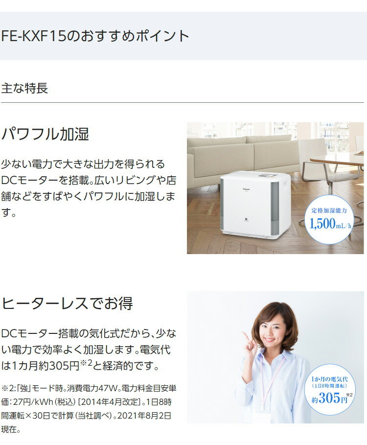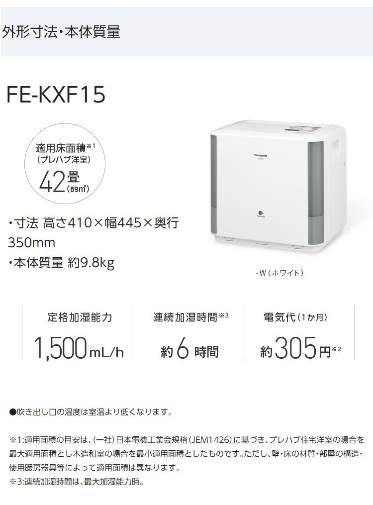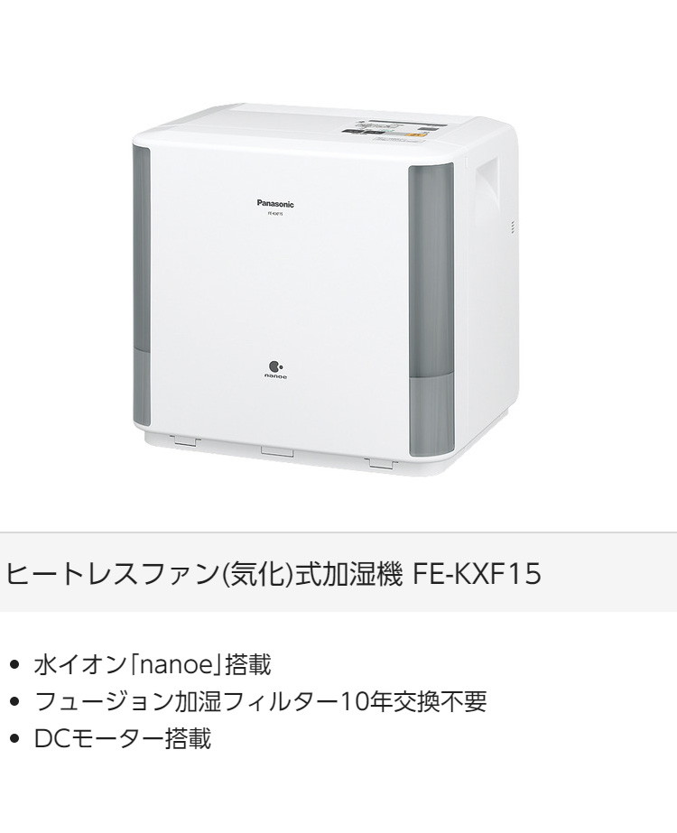 パナソニック 気化式加湿器 FE-KXF15-W nanoe搭載 フュージョン加湿フィルター DCモーター搭載