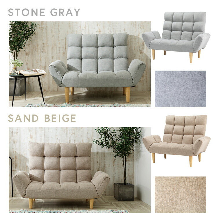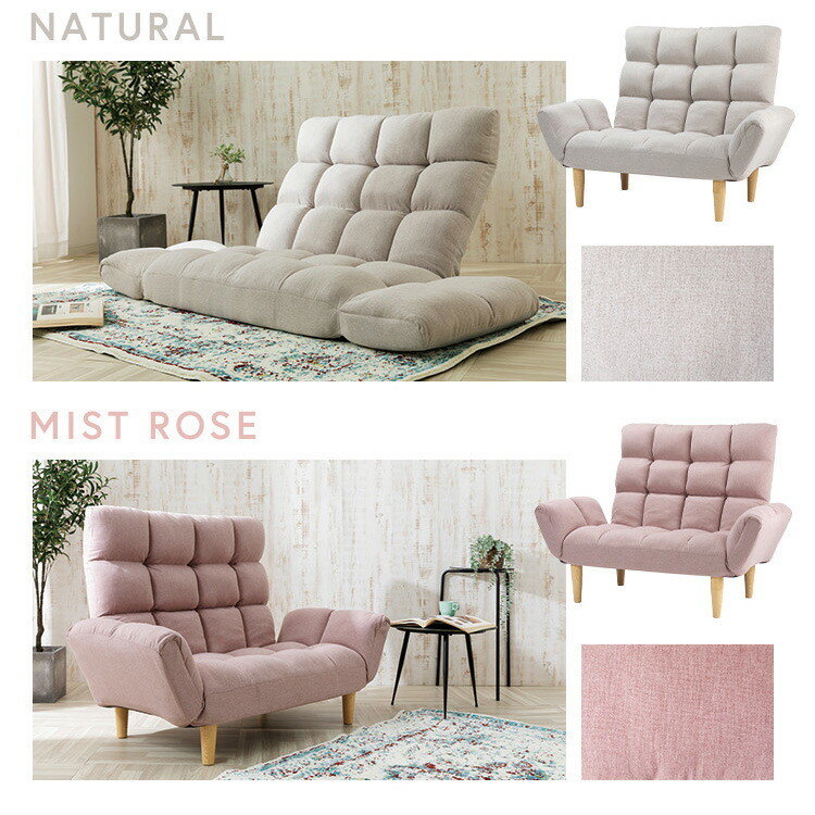 高さが選べるふんわりリクライニングソファ ハイバックソファ 2人掛け 折りたたみ仕様 6段階 7段階 ソファーベッド HIA ミストローズ