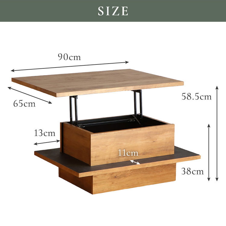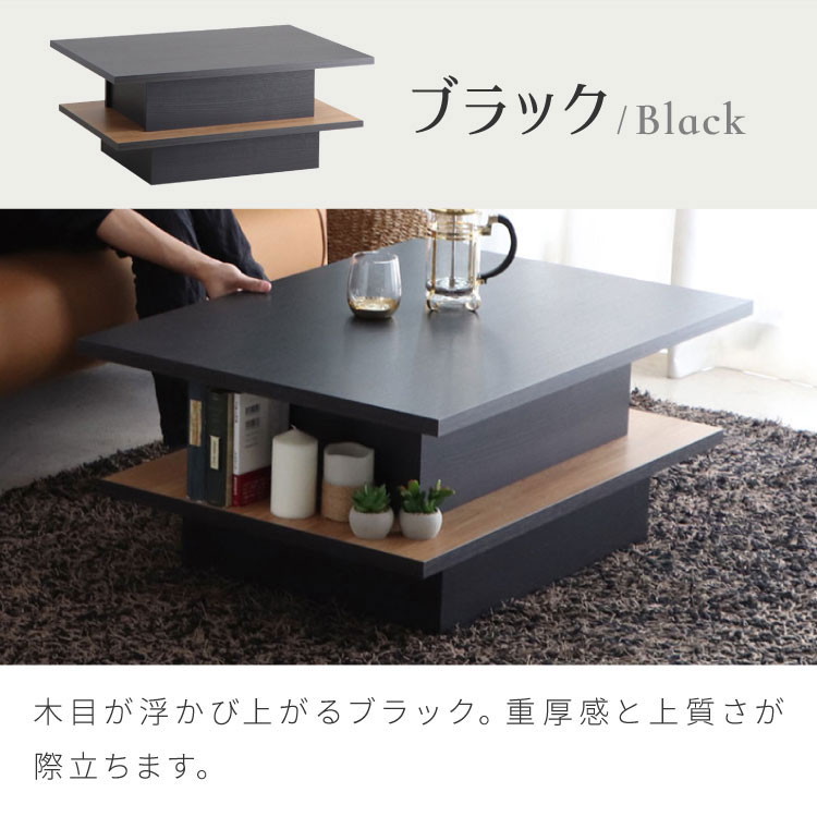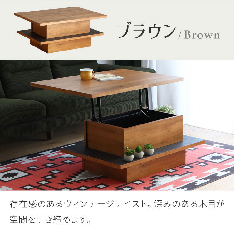 リフトアップテーブル 幅90cm センターテーブル 日本製 完成品 昇降式 ソファテーブル ブラック