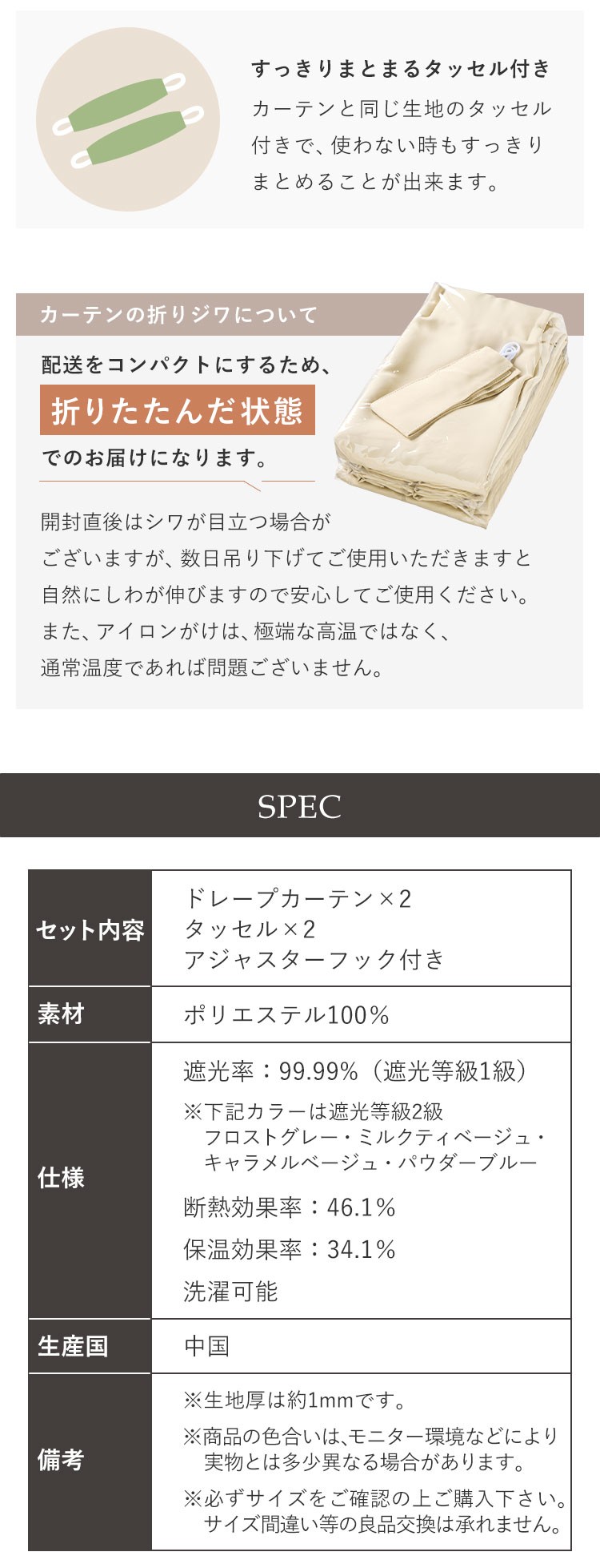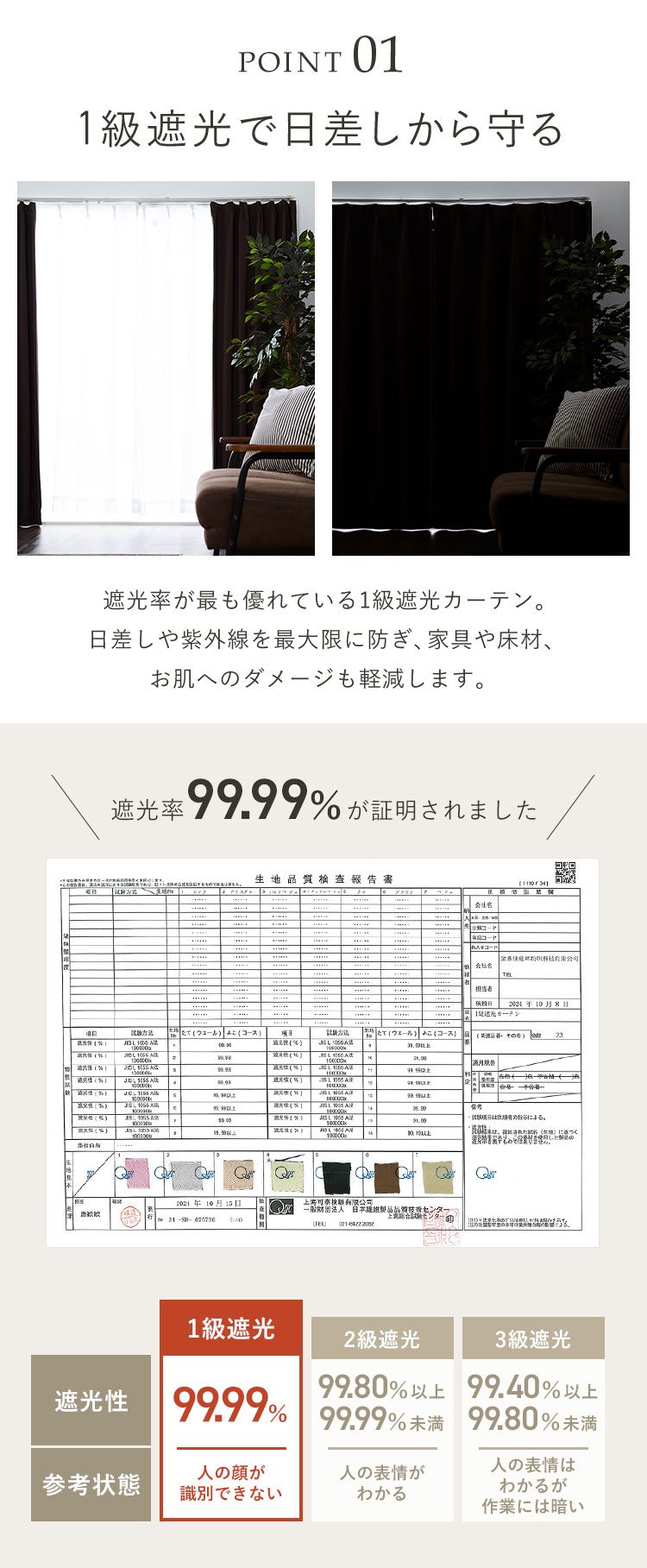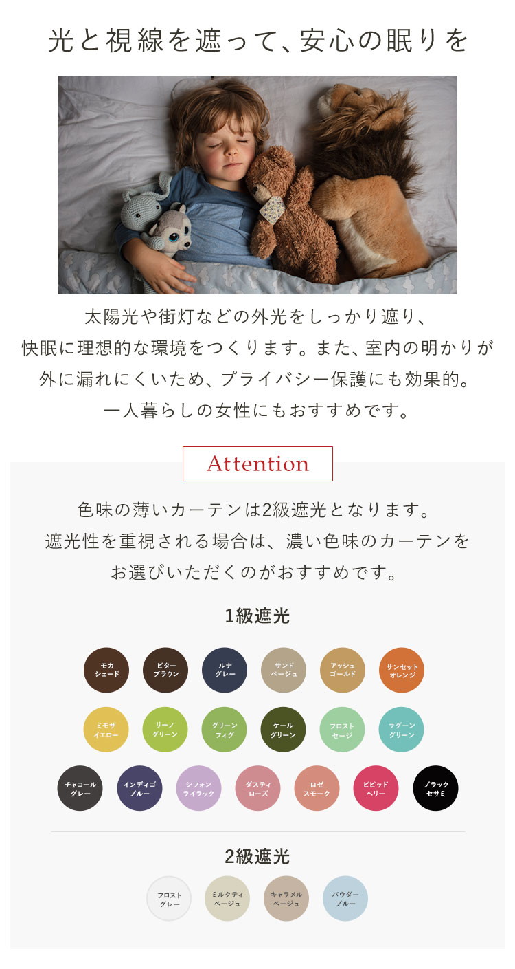 遮光率:99.99%(遮光等級1級)※薄色(遮光等級2級)