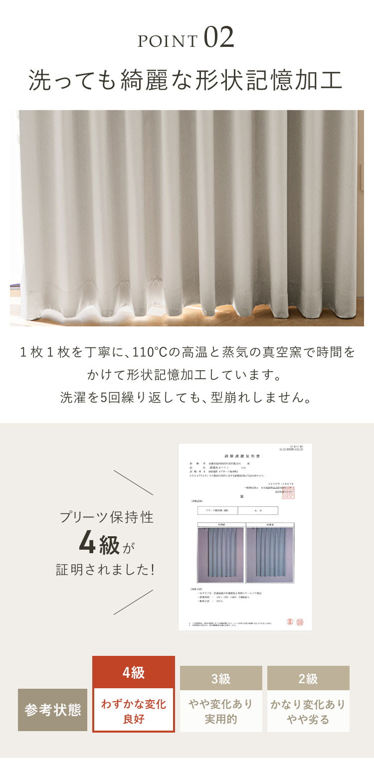 形状記憶加工を施した1級遮光カーテンです。