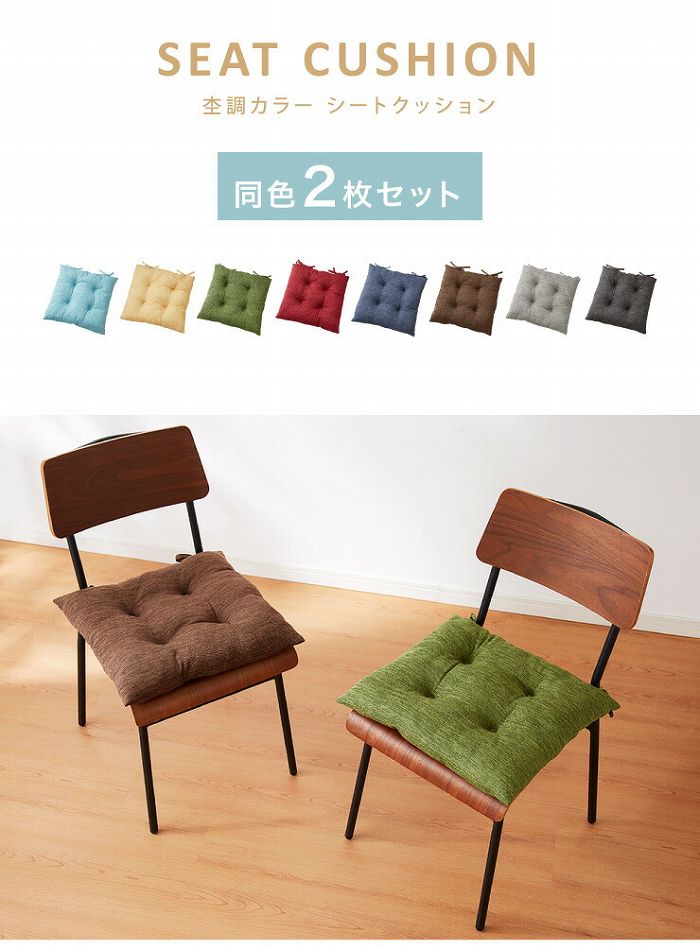 シートクッション 杢調 同色2枚セット 45×45 ネイビー