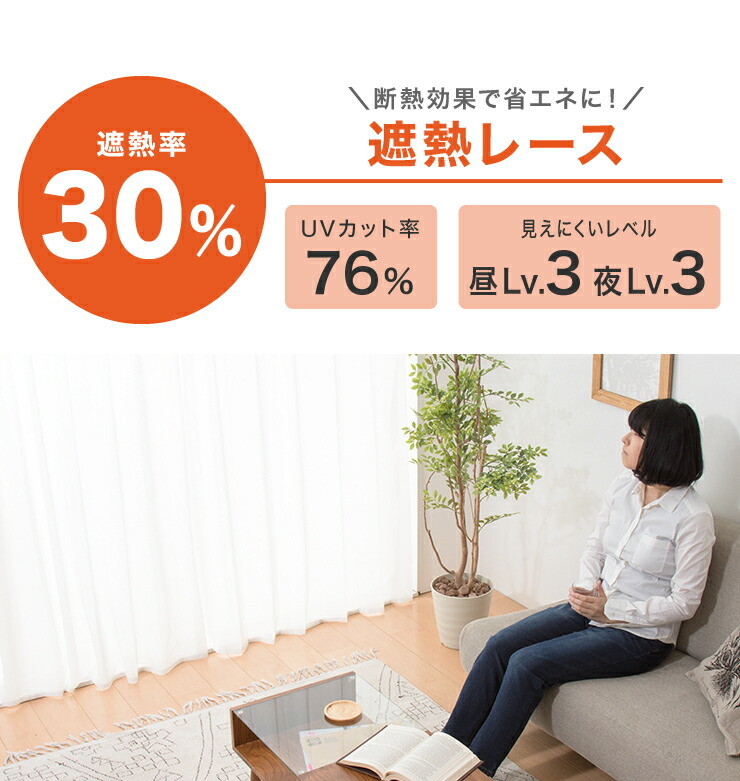 機能:遮熱率30%/UVカット率76%、見えにくいレベル昼3、夜3