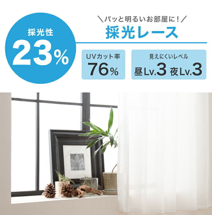 機能:採光性23%、UVカット率76%、遮熱率25%、見えにくいレベル昼3、夜3