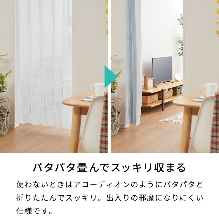 間仕切りカーテン フリーカット アコーディオンカーテン 遮熱 保温 遮像 UVカット つっぱり式 カーテン 幅150cm ライトグレー