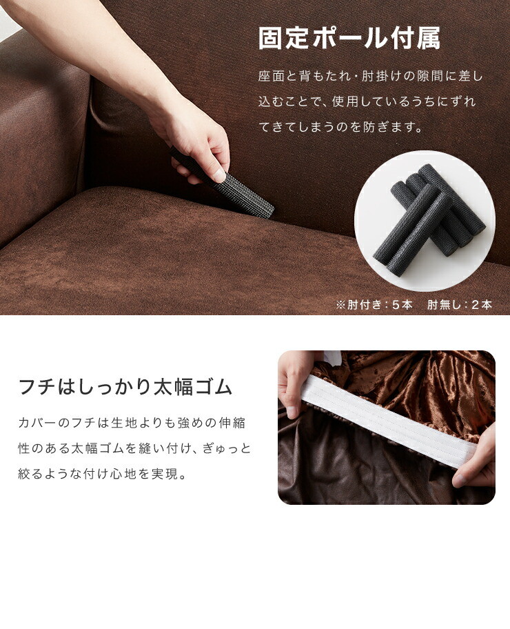 ソファーカバー 2人掛け用 レザー調 肘なし 肘無し 伸縮素材 ストレッチ ズレない 合皮 合成皮革 ダークブラウン