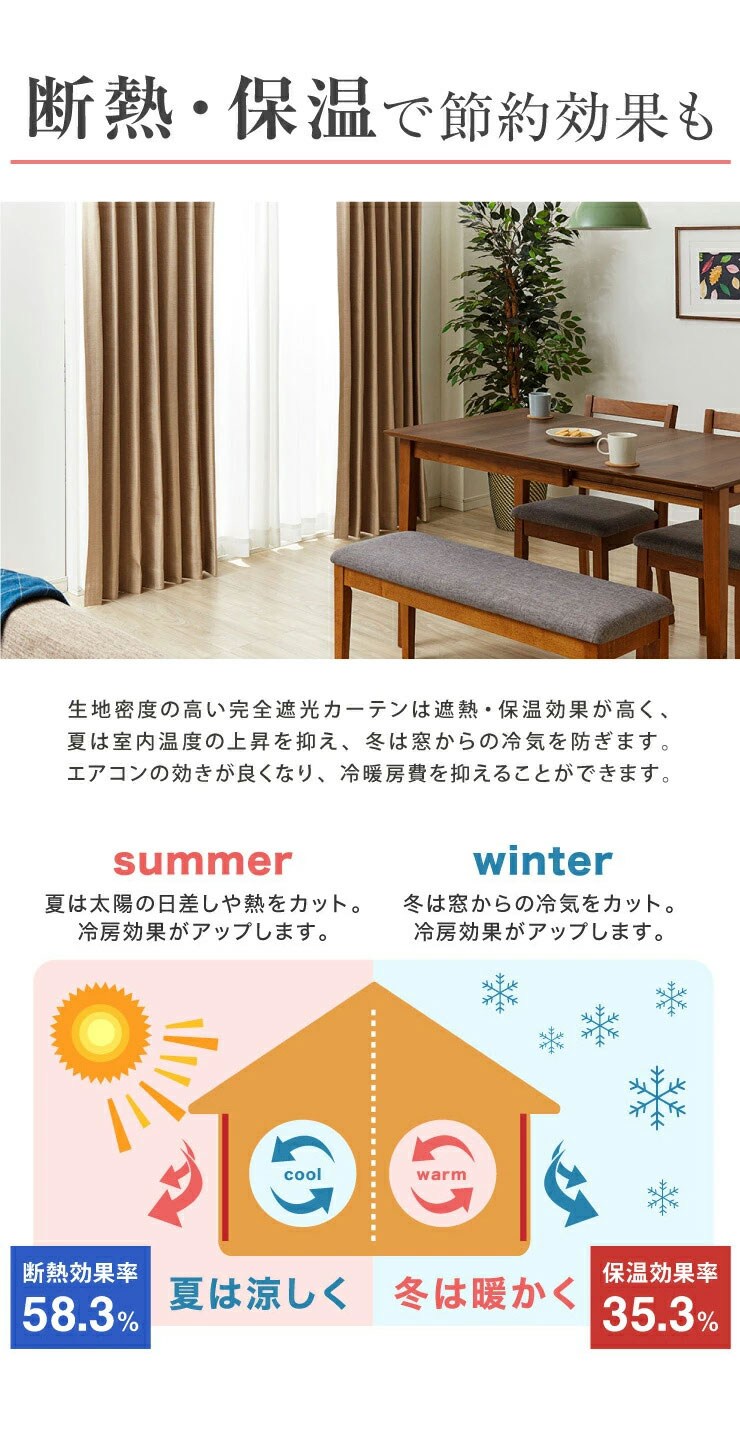 軽い 完全遮光カーテン 2枚組 軽量 遮光 遮熱 断熱 ウォッシャブル 1級遮光 防音 100%遮光 リーフグリーン 100×135cm