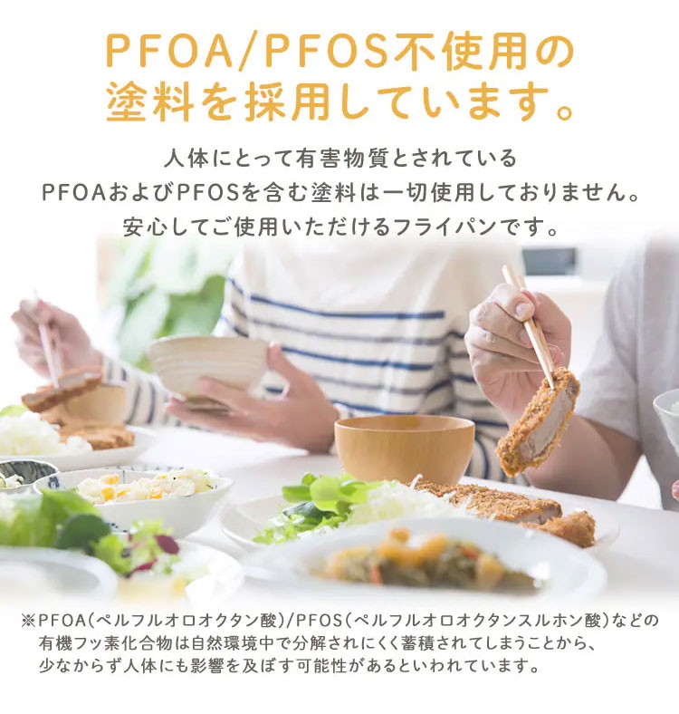 人体にとって有害物質とされているPFOAおよびPFOSは一切使用していません。