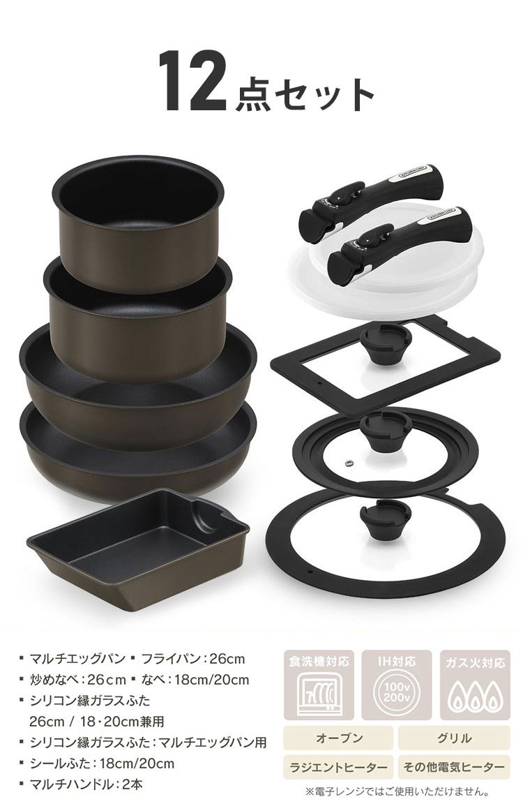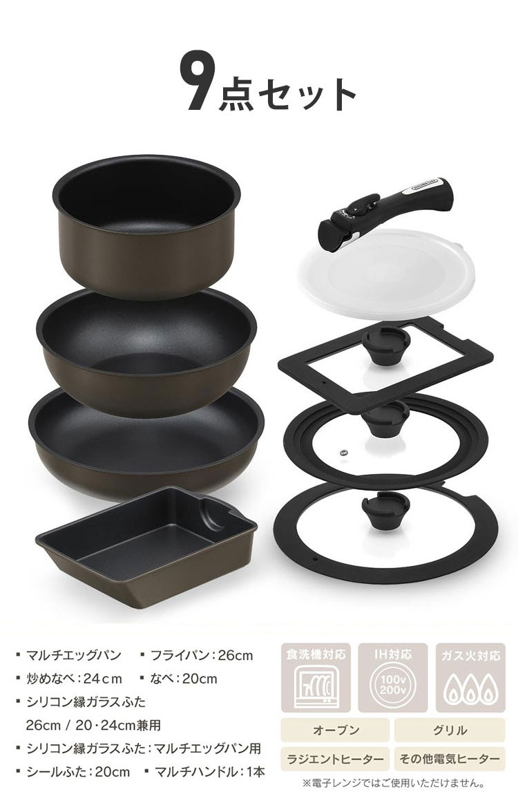 【マルチエッグパン付き!】 フライパンセット 6点 9点 12点 IH対応 取っ手が取れる IH ガス火 蓋付き 深型 幅広 アイリスオーヤマ MEGI 12点セット
