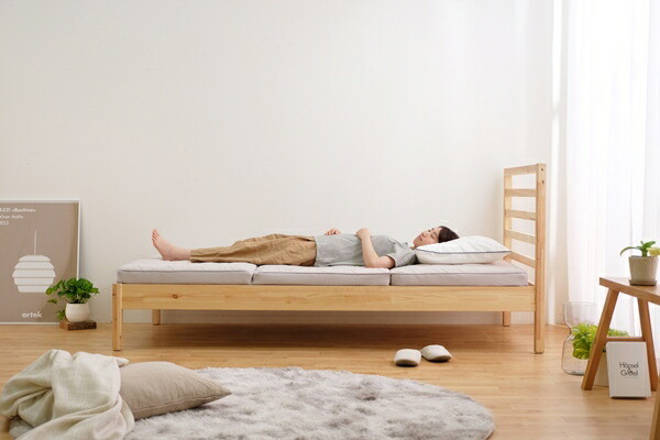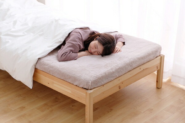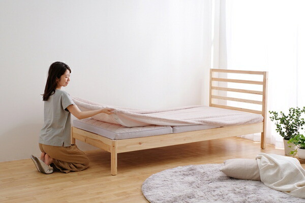 高い保湿性と保温性が特徴のエアリーマットレス Softeです。詰めもの上層部は約2cmの球形状粒わたをシート状に加工したマルーンシートです。軽くてやわらかい風合いはそのままに、片寄りにくく弾力性に優れています。詰めもの下層部は約4.8cmのエアロキューブを使用しています。高反発で身体を支え、体圧を分散します。湿気を逃し快適です。側生地は高い保湿性をもつリフレスを使用しています。セルロース系モイストファイバーで、しっとり、しなやかな風合いが魅力です。ふわふわした優しい肌触りのフェイクファーのボックスカバー付きです。コンパクトに収納できる三つ折りタイプです。