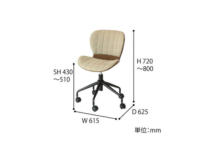 W 615×D 625×H 720(430)~800(510)mm