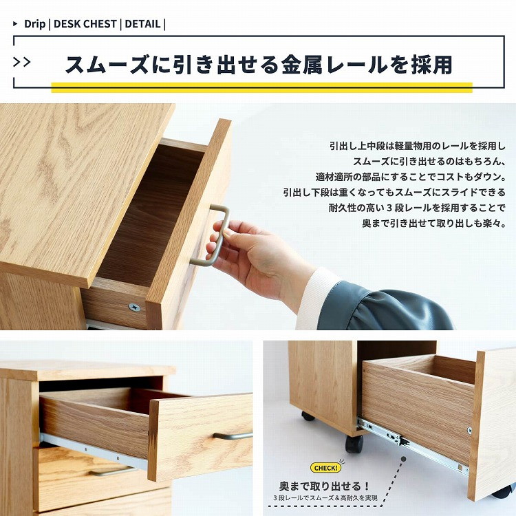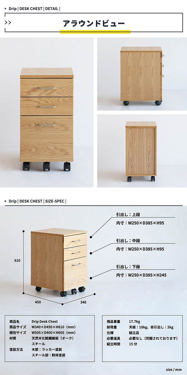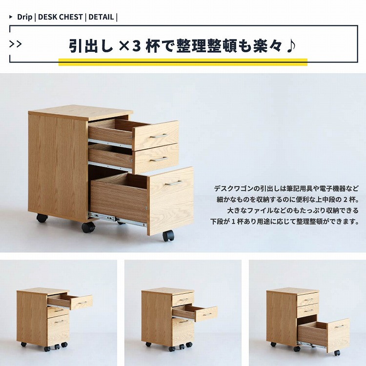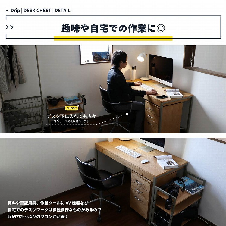 チェスト 幅34 奥行45 高さ61 デスクワゴン シンプルデスク ミニマルデザインデスク 在宅ワークデスク 学習机