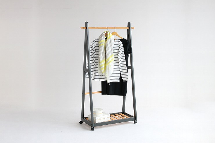 天然木 キャスター付き A型ハンガーラック ツートンハンガー パイン材 コートハンガー 収納 木製 棚付き
