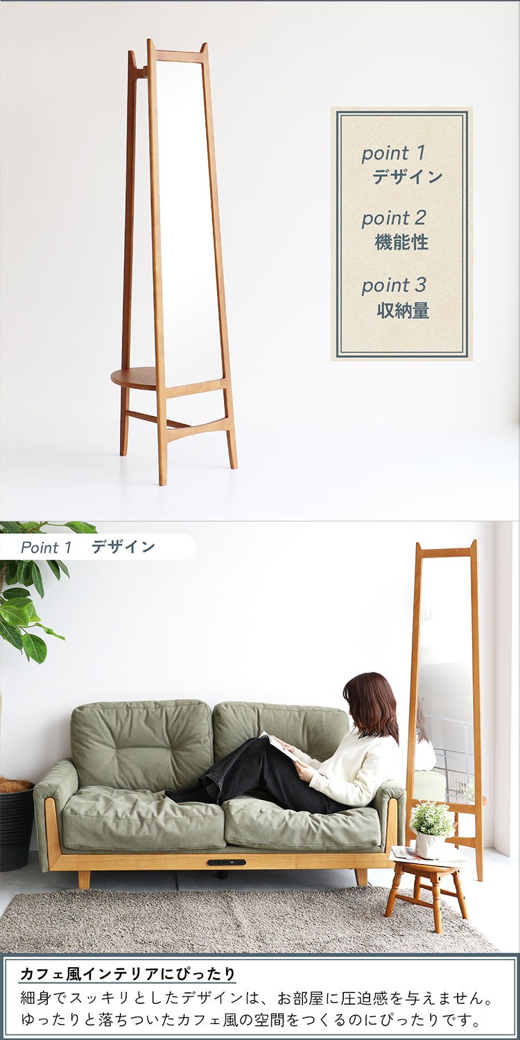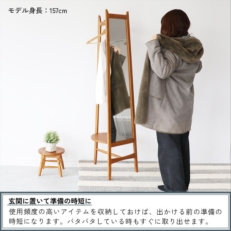 ミラーハンガー チャール スタイルミラー 飛散防止 収納付きミラー ハンガーラック 収納家具 コートハンガー 玄関収納