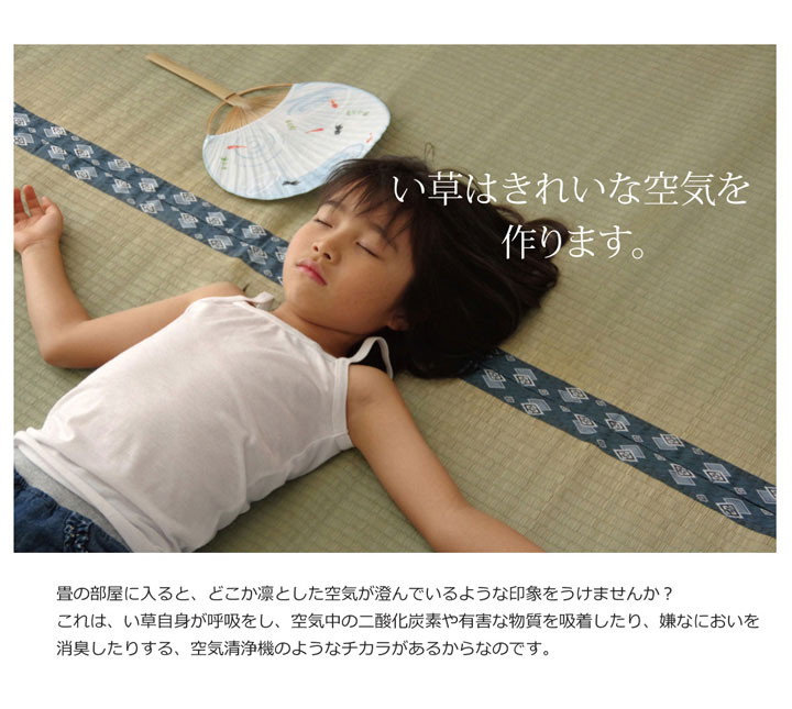 表地=い草(九州産) ※双目織 ヘリ=ポリプロピレン、ポリエチレン