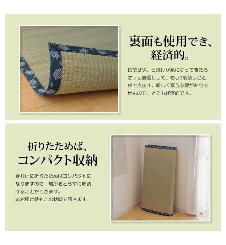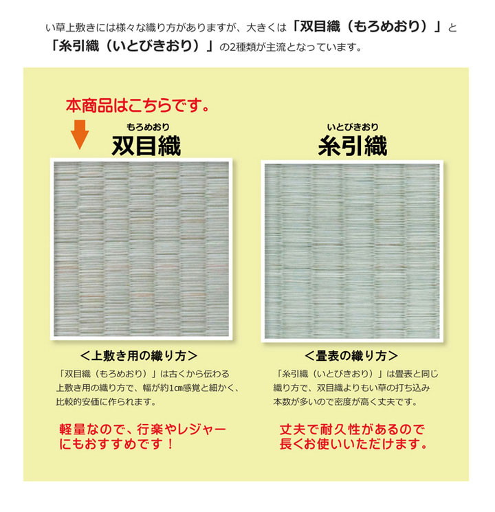 表地=い草(九州産) ※双目織 ヘリ=ポリプロピレン、ポリエチレン