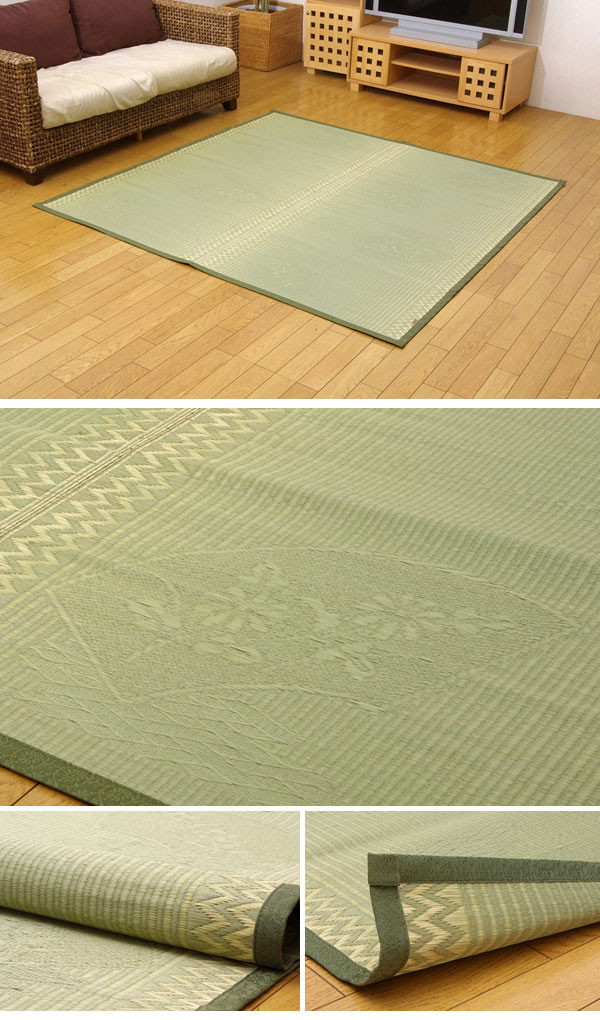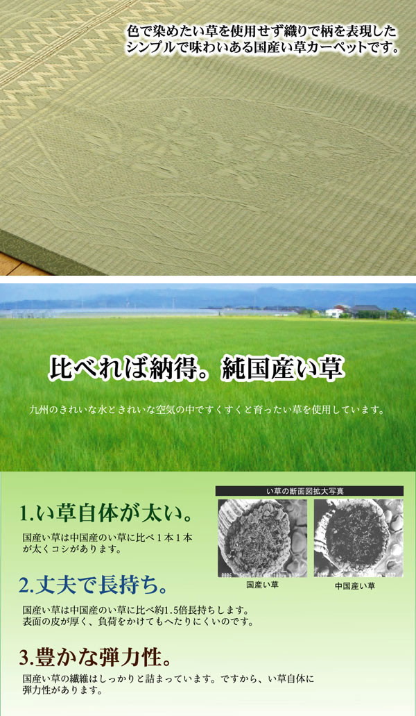 純国産 イ草花ござカーペット 『扇』 江戸間3畳(約174×261cm)