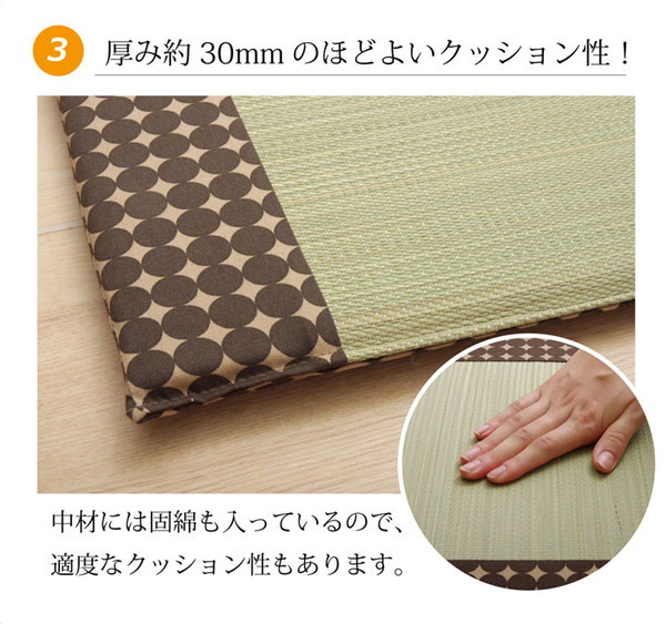 素材:表地=い草(九州産) 布部分=綿100% 中材=アレルプルーフ+ポリエステル100%【固わた】