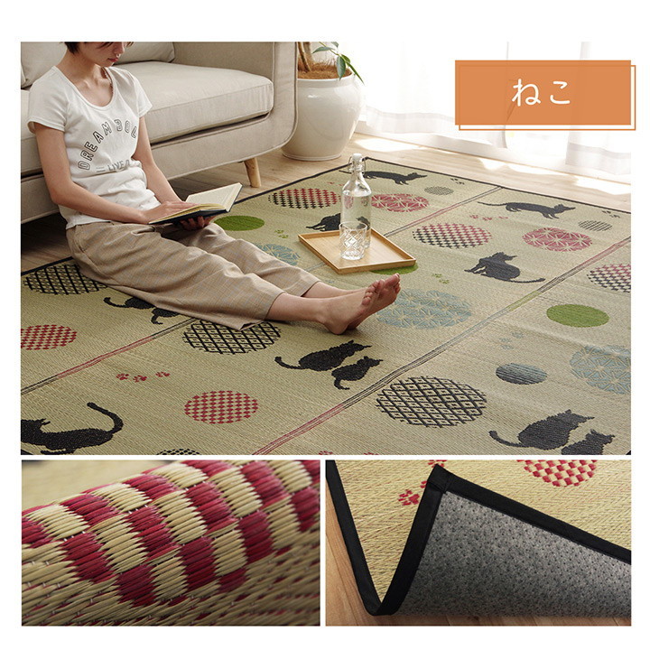 表地=い草 ※普通織 裏地=ポリエステル100%【滑り止め不織布】 ヘリ=ポリエステル100%
