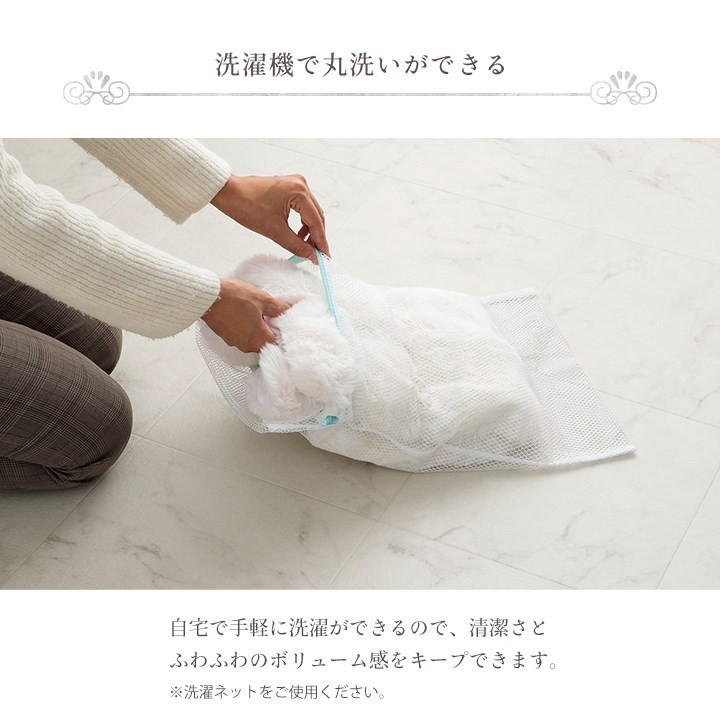 自宅で手軽に洗濯ができるので、清潔さとふわふわのボリューム感をキープできます。