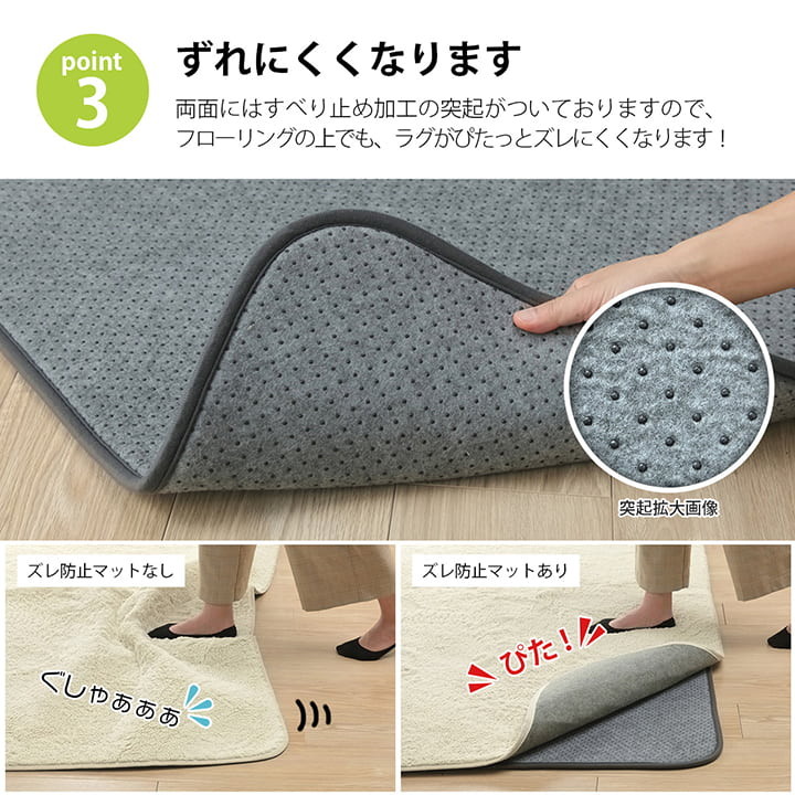 ラグ 下敷き 滑り止め 滑りにくい 防音 へたりにくい ボリューム ウレタン10mm クッション性 約180×180cm 床暖房 ホットカーペット対応