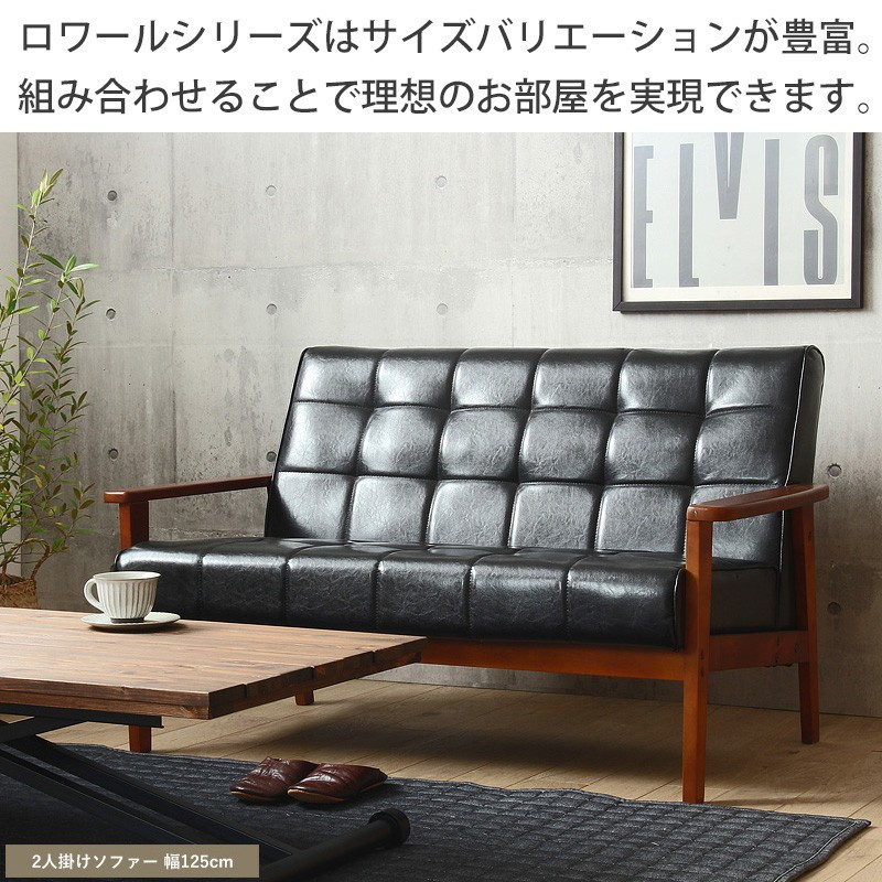 レザー調 肘掛け付きソファ 二人掛け 2人掛け レトロモダンソファ