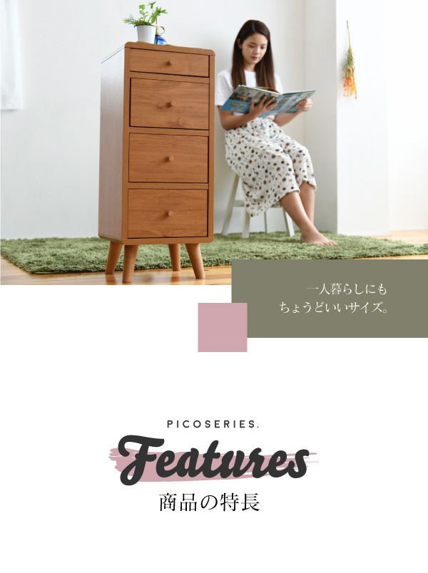 チェスト 北欧 スリム 幅30 奥行32 高さ73.5 引き出し 収納 4段 リビング収納 ラック スリムラック