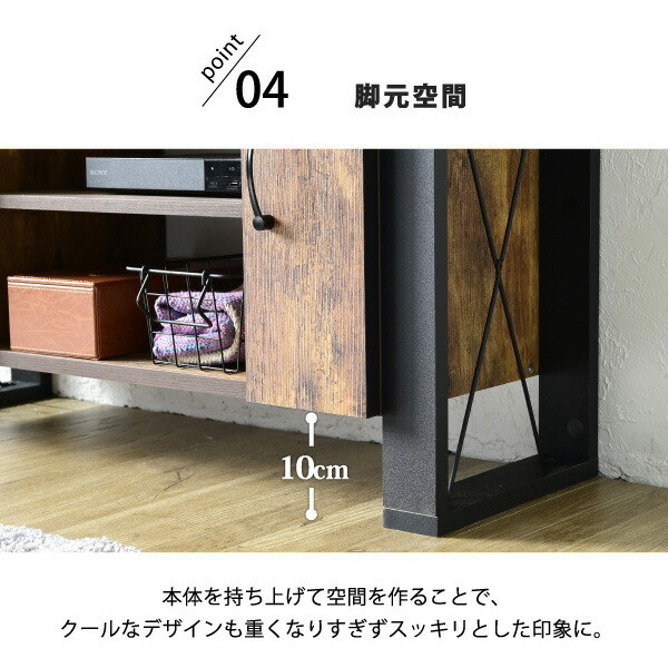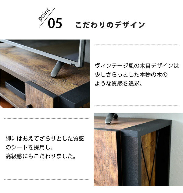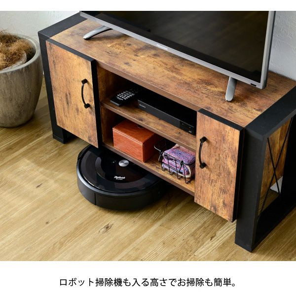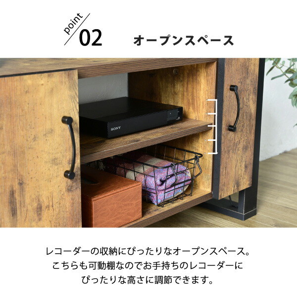 カフェの雰囲気を演出できる、ヴィンテージ風シートがおしゃれなブルックリンスタイルのテレビ台。