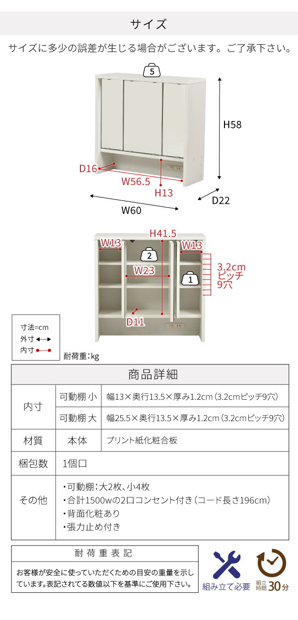(左右ミラー扉内)幅13×奥行11×高さ41.5cm